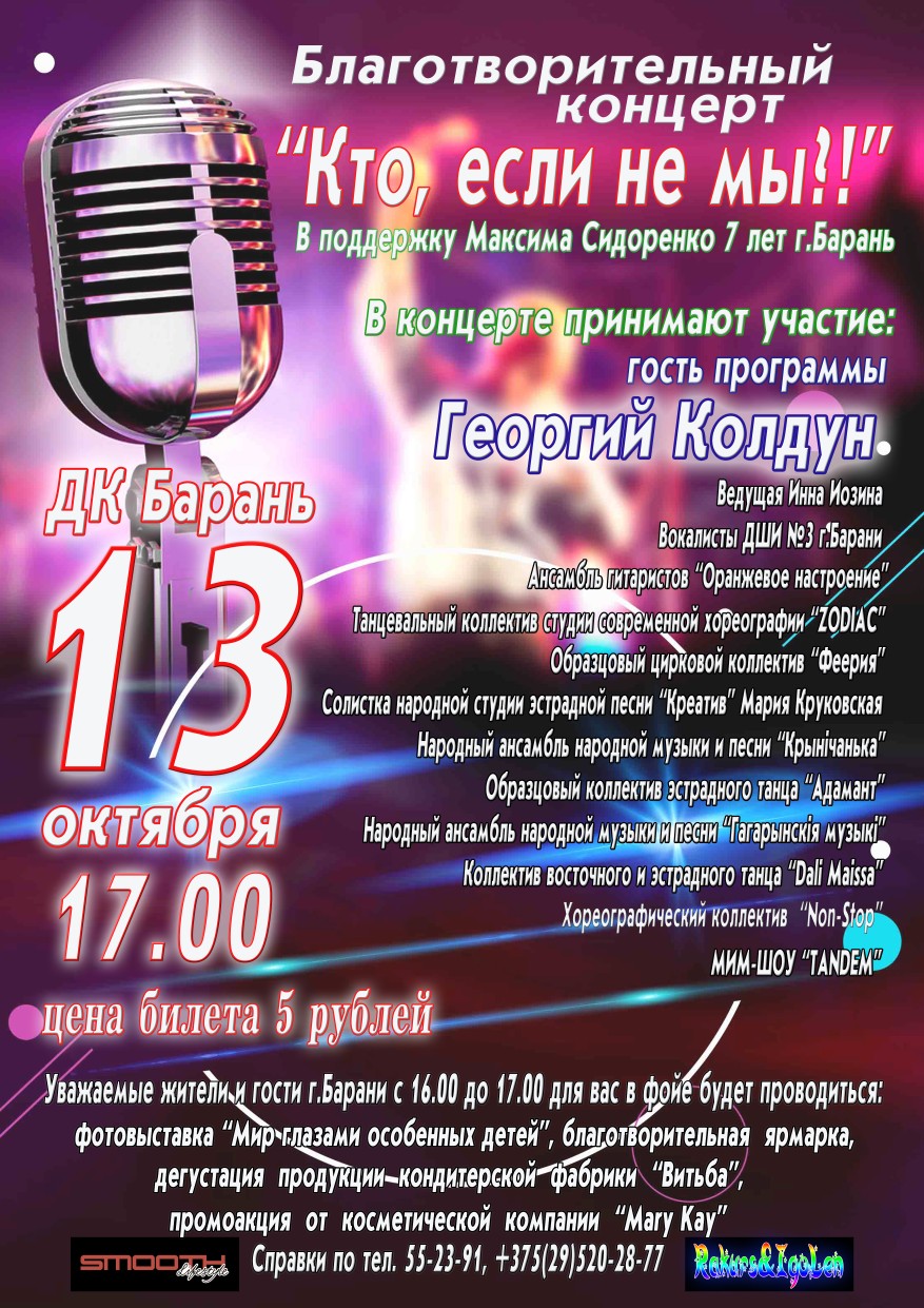 В Барани пройдет благотворительный концерт в поддержу семилетнего Максима Сидоренко.