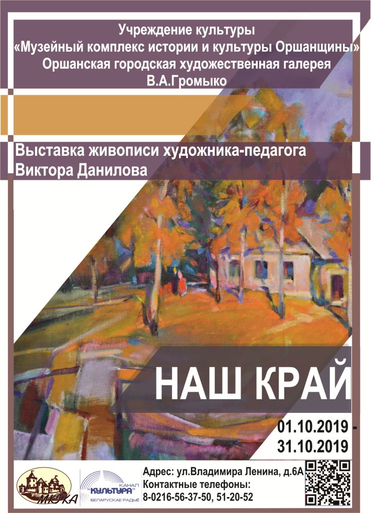 В Оршанской городской художественной галерее В.А. Громыко 4 октября состоится торжественное открытие выставки живописи художника педагога, члена Международной гильдии живописцев Виктора Данилова «Наш край».