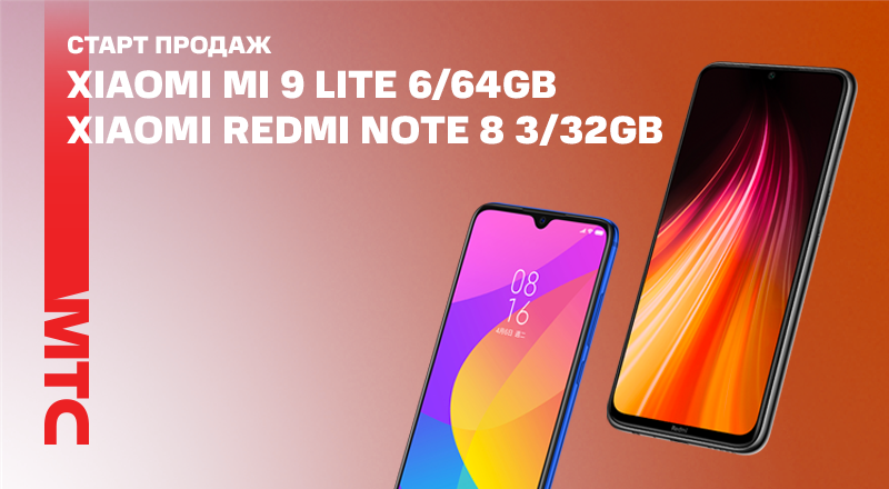 В сети салонов и интернет-магазине МТС стартовали продажи моделей Xiaomi Mi 9 Lite 6/64 и Xiaomi Redmi Note 8 3/32.