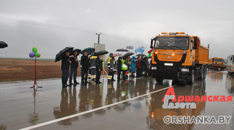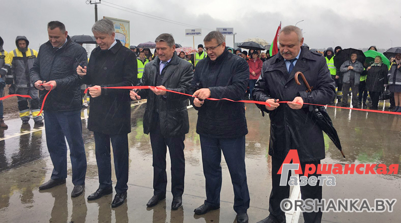 Символическую красную ленточку перерезали заместитель министра транспорта и коммуникаций Республики Беларусь Андрей Иванов, заместитель председателя Витебского областного исполнительного комитета Владимир Белоус, председатель Оршанского райисполкома Игорь Исаченко, директор РУП «Витебскавтодор» Адам Коноплич, генеральный директор ОАО «Дорожно-строительный трест №1 г. Витебска» Олег Капцевич.