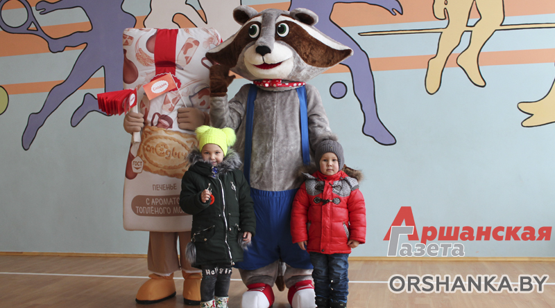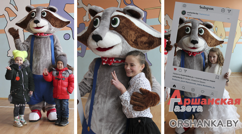 Енот Яша и печенька Слодыч тепло приветствовали ребят и фотографировались с ними.
