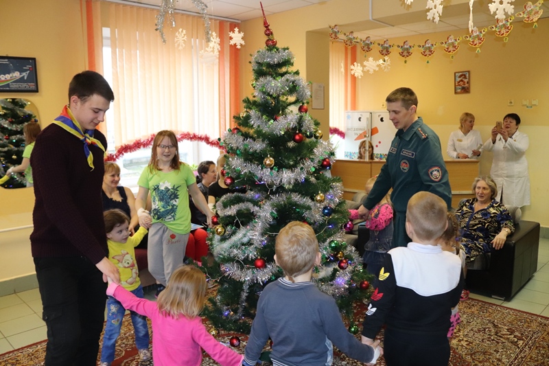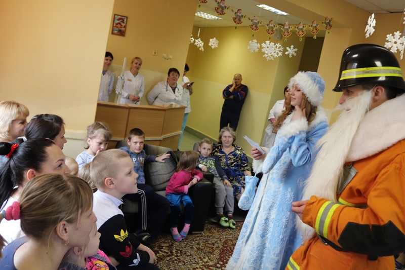 Самых маленьких пациентов детского отделения больницы имени Семашко сегодня навестили необычные гости, которые вызвали бурю эмоций не только у детей, но и у родителей. Главными героями мероприятия стали Пожарный Дед Мороз и Снегурочка, а помогали им активисты Белорусской молодежной общественной организации спасателей-пожарных.
