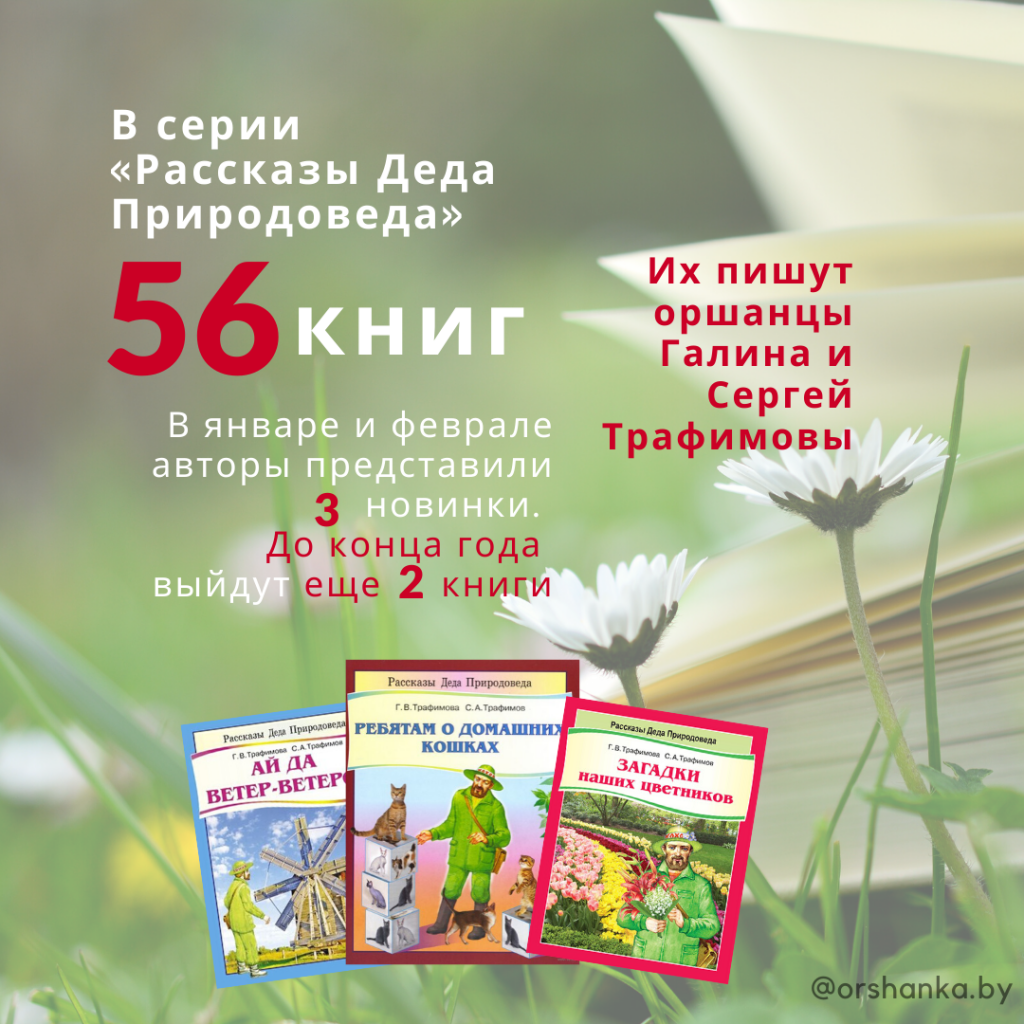 Серия «Рассказы Деда Природоведа» состоит из 56 книг. Главный герой изданий — Дед Природовед, который дает исчерпывающие ответы на различные вопросы. В этом году писатели представили три новые книги: «Что растет в воде и у воды?», «Куда ведет тропинка луговая?», «Знаете ли вы кустарники?». К концу года выйдут еще две книги.