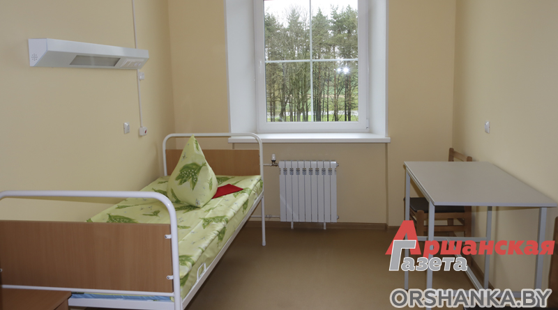 Лечебный корпус рассчитан на 30 коек. Здесь заменили кровлю, межэтажные перекрытия, окна, двери, провели воду, электричество, теплоснабжение, благоустроили прилегающую территорию. На строительные работы было потрачено почти 3,5 млн белорусских рублей. Строительно-монтажные работы проводил филиал ОАО «Трест Белтрансстрой».