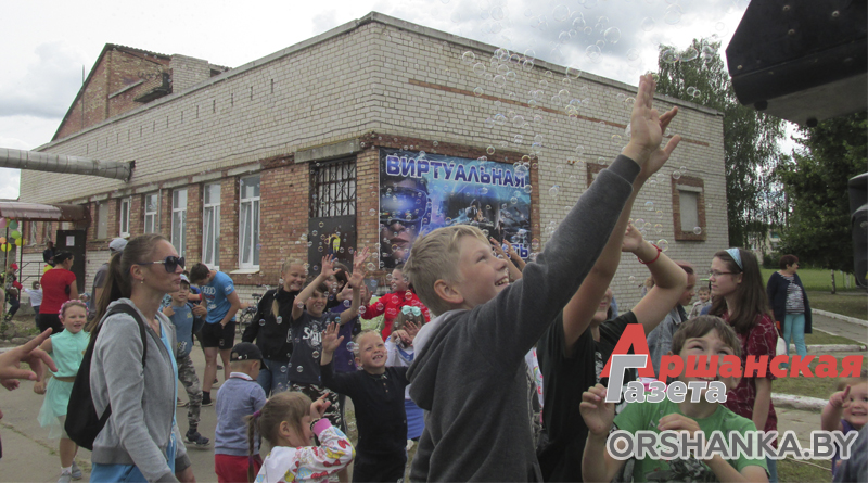 В агрогородке организовали детский праздник с развлекательной программой аниматоров, шоу мыльных пузырей, розыгрышами сувениров и подарков.