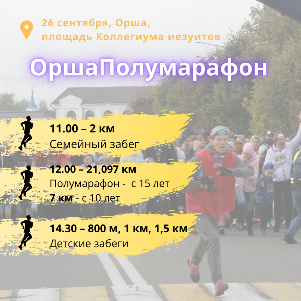 Оршанцы во второй раз пробегут полумарафон! 26 сентября в нашем городе состоятся соревнования для детей и взрослых.