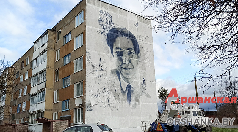 Оршанец Дмитрий Толкачёв давно задумал нарисовать портрет Владимира Короткевича и работал над цветным эскизом. А этой осенью создал мурал на фасаде дом по улице Марата, 2 в Орше. Это подарок к юбилею писателя: 26 ноября 2020 года Владимиру Семёновичу исполнилось бы 90 лет.