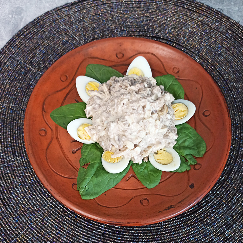 Ингредиенты: печень говяжья – 600 г, лук репчатый – 3 шт., яйца – 4 шт., перепелиные яйца для украшения, зелень, майонез, соль.
