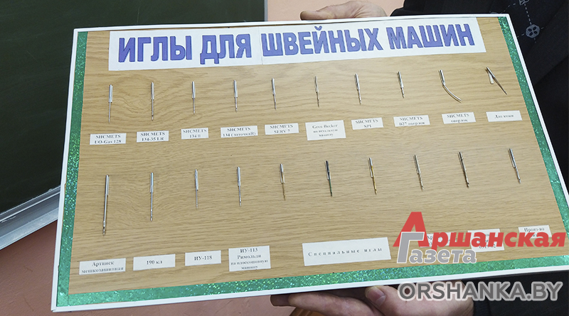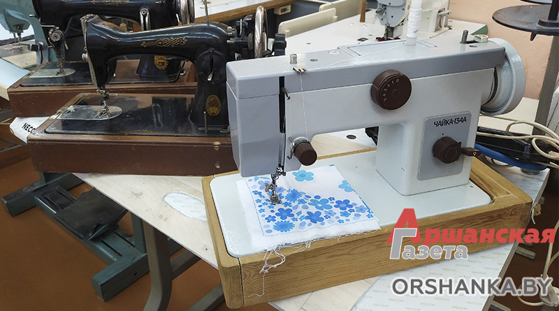 В швейном цеху колледжа можно увидеть машинку для сборок и рюшек, машинки для пошива элитного женского белья с раскладчиком, пошива мешков и изделий из кожи. Все это разработки завода «Легмаш». Здесь же хранится оршанский бытовой трехниточный оверлок, который, по словам Виктора Леонидовича, пользовался большим спросом не только в Беларуси, но и в России: «Он очень простой в эксплуатации. Любая хозяйка по инструкции может сделать его заправку».