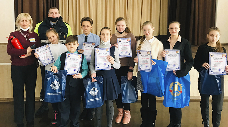 За активное участие в конкурсе инспекторы вручили памятные подарки ученикам средних школ № 4, 6, 8 г. Орши, Бабиничской средней школы Оршанского района, а главным призом – огнетушителем – награждена Гимназия № 1 г. Орши.
