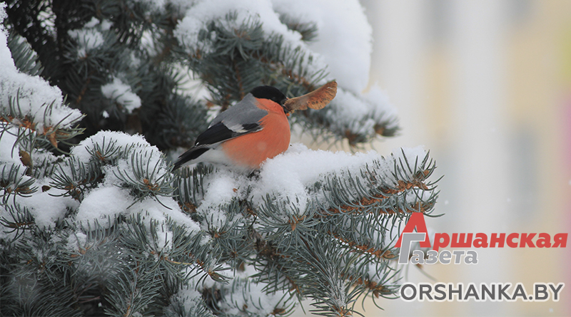 А на елках в Городском парке появились «яблочки» – издалека снегирей легко можно принять за этот фрукт.