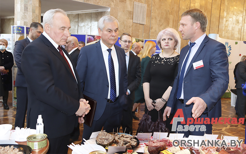 В фойе концертного зала развернулась выставка-дегустация пищевой продукции и товаров, выпускаемых предприятиями области. Новинки Оршанского агропромышленного предприятия особенно понравились гостям. Колбасные изделия, мороженое, сыры от Оршанского мясоконсервного комбината и Оршасырзавода участники праздничного мероприятия оценили по достоинству.