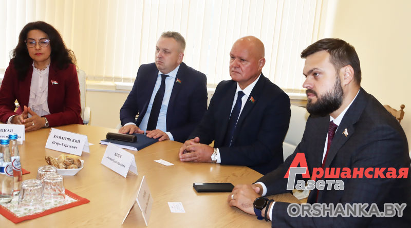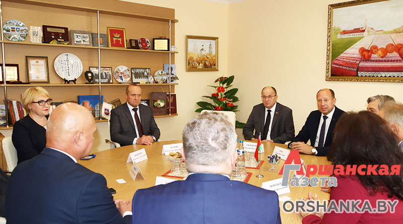 В райисполкоме сегодня состоялась встреча гостей с руководством района. В ней приняла участие заместитель Министра экономики Республики Беларусь Анжелика Никитина. Первый заместитель председателя Оршанского райисполкома Сергей Пац и председатель районного Совета депутатов Анатолий Сильченко рассказали о потенциале региона, его возможностях, новых проектах, которые реализуются в рамках Указа № 506, поделились, чем сегодня живет и гордится Оршанщина.