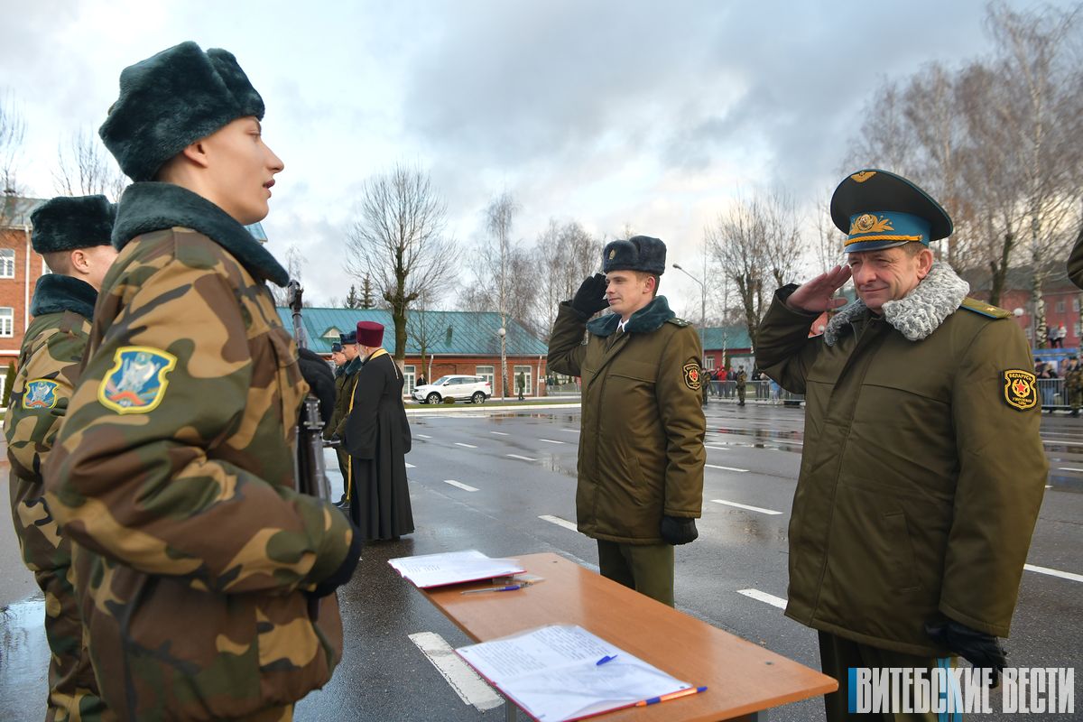 — Этот ритуал существует с давних времен и является посвящением благородной и уважаемой профессии защитника Отечества. Он символизирует то, что белорусский народ доверяет вам самое дорогое — свою безопасность, — обратился к бойцам Вадим Денисенко. — Вас ждет усиленная боевая подготовка, освоение специальности военного учета и оружия, участие в учениях и боевых стрельбах. А государство, со своей стороны, позаботилось о том, чтобы вы имели достойные условия для жизни, учебы и отдыха в армии.