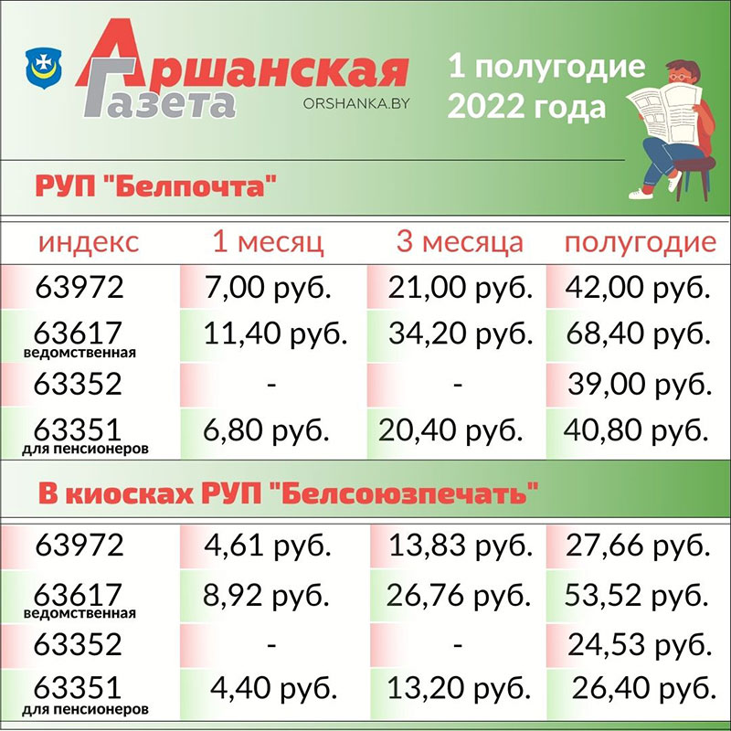 Идет подписная кампания на «Аршанскую газету» на 1-е полугодие 2022 года. В отделениях почтовой связи редакция проводит дни подписчика.