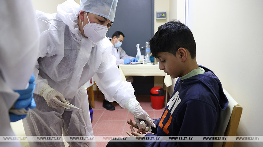 В пункте временного размещения беженцев в транспортно-логистическом центре на границе открыли стационарный медицинский пункт, передает корреспондент БЕЛТА.