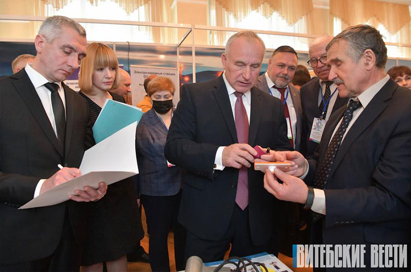 Участники очной встречи ознакомились с развернувшейся в экспозиционном зале облисполкома выставкой достижений в цифровой экономике, разработками научных институтов Беларуси и, в частности, вузов Витебщины.