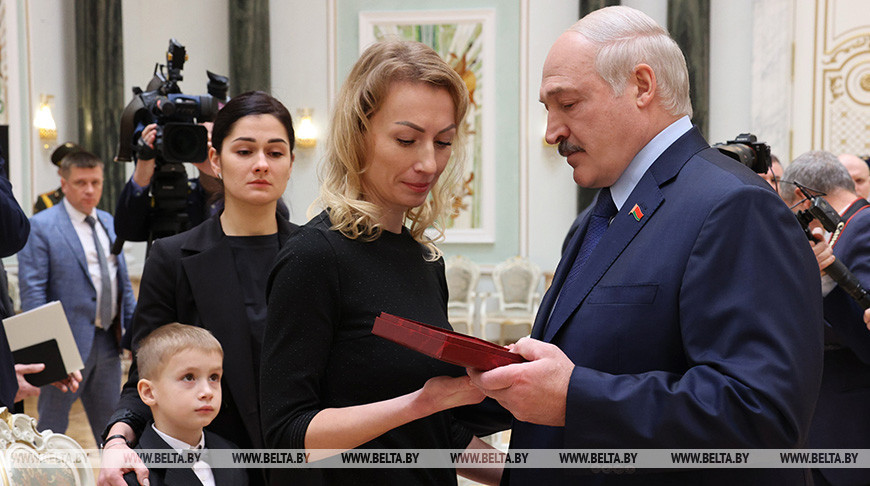 «Я вас пригласил на эту невероятную, исключительную в моей жизни церемонию для того, чтобы передать вам государственные награды ваших родных, совершивших героический подвиг», — добавил Александр Лукашенко.