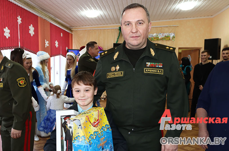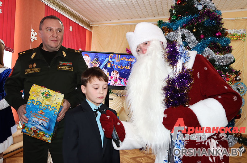 Подарками от Министерства обороны для воспитанников СПЦ стали мультиборд, сладкие наборы и выступление академического ансамбля песни и танца Вооруженных Сил Республики Беларусь. А председатель Оршанского райисполкома передал сертификат на 20 тысяч рублей для укрепления материально-технической базы учреждения. Также райисполком подарил СПЦ мягкую мебель для комнаты отдыха.
