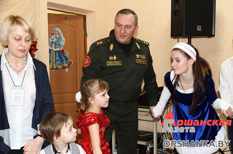 Министр обороны Республики Беларусь генерал-лейтенант Виктор Хренин присоединился к республиканской благотворительной акции «Наши дети». Накануне новогодних праздников он впервые побывал в социально-педагогическом центре города Орши, где ознакомился с материально-технической базой учреждения и принял участие в новогоднем представлении.