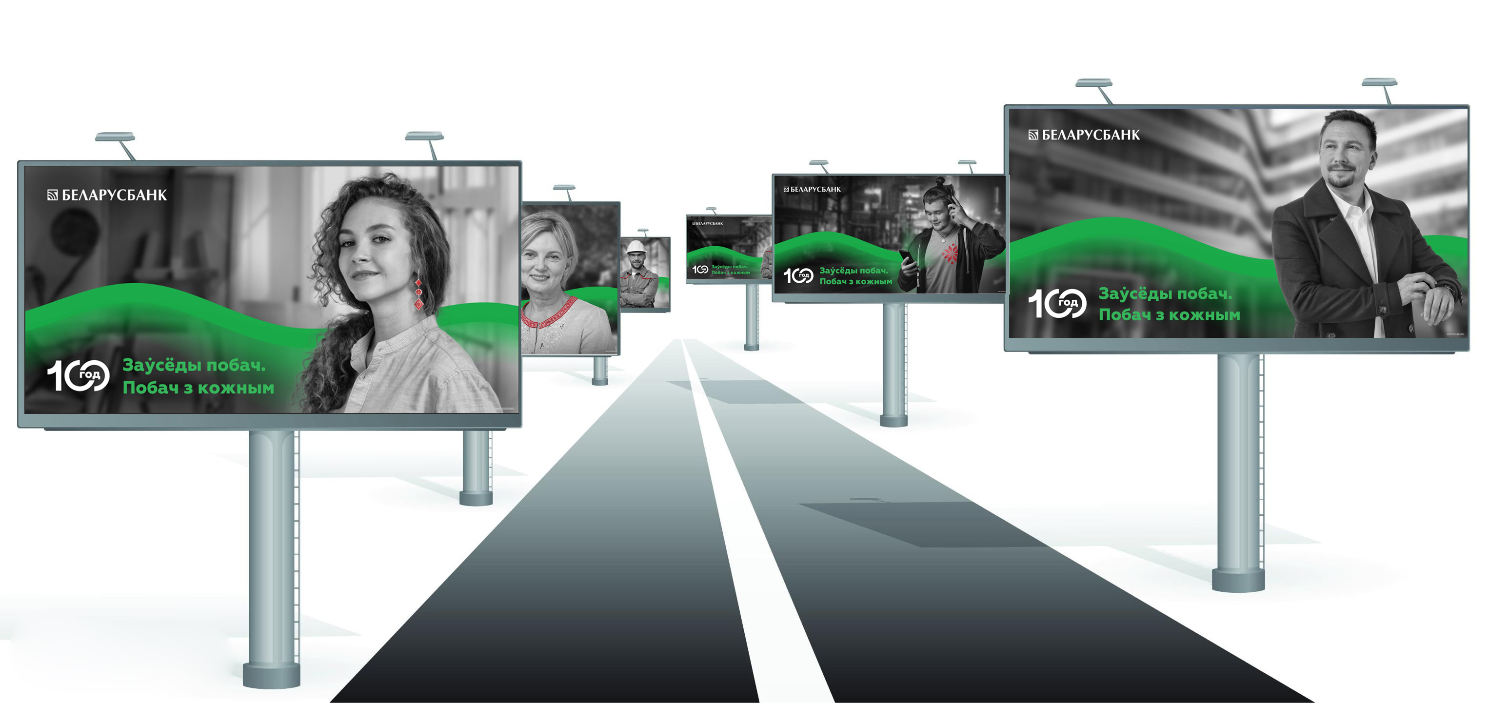 У шэрагу населеных пунктаў краіны жыхары ўжо могуць бачыць бігборды банка са слоганам «100 год. Заўсёды побач. Побач з кожным».