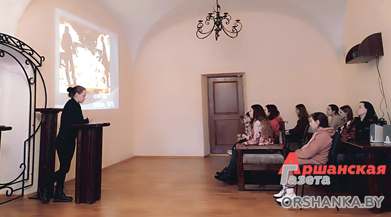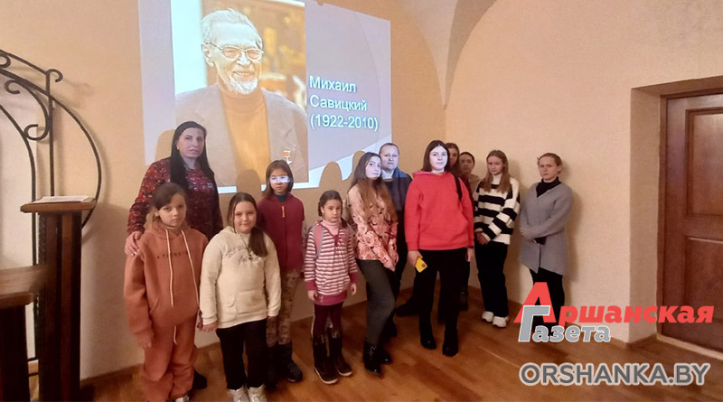 Художественную гостиную под названием «Опалённая память» посетили воспитанники студии ИЗО «Серпантин» Оршанского районного центра творчества детей и молодежи. В ходе мероприятия присутствующие познакомились с непростой судьбой Михаила Савицкого и узнали о значимых моментах его творчества.