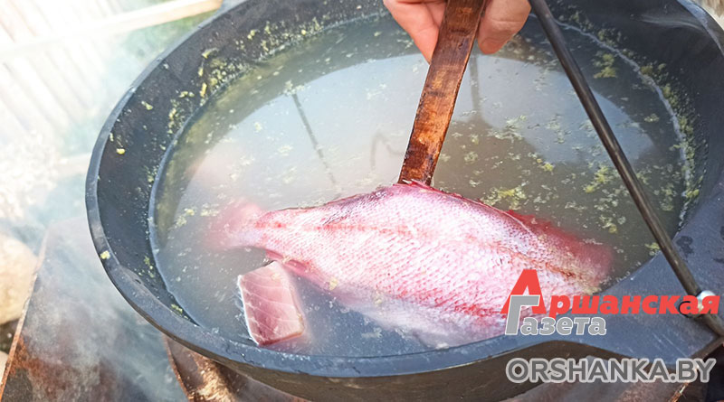 Для приготовления нам потребуется: половина петуха (суповая курица), 500 г судака, 500 г окуня, 1 карп, 3 средние картошки, 3 моркови, 3 луковицы, лавровый лист, черный перец горошек, соль, 100 г водки, стакан перловки, около 5 л воды, зелень.