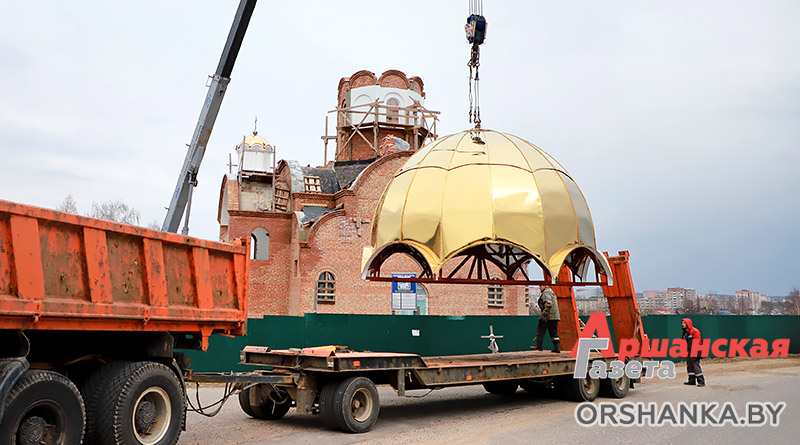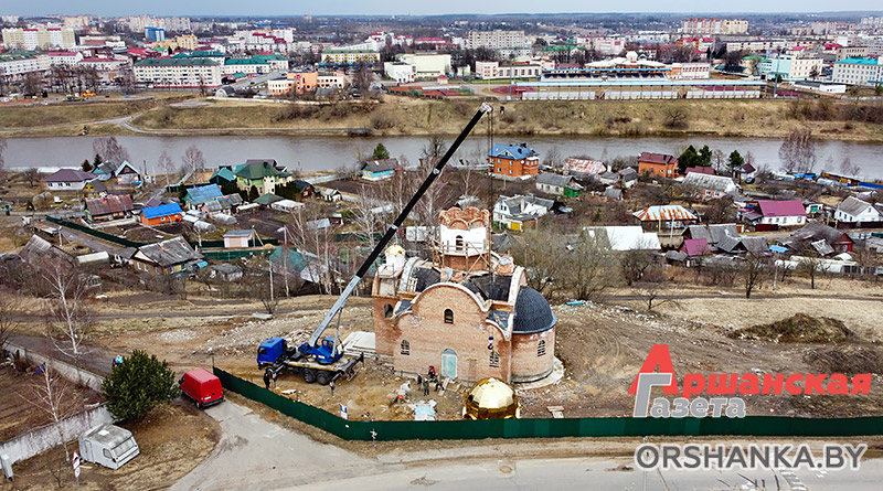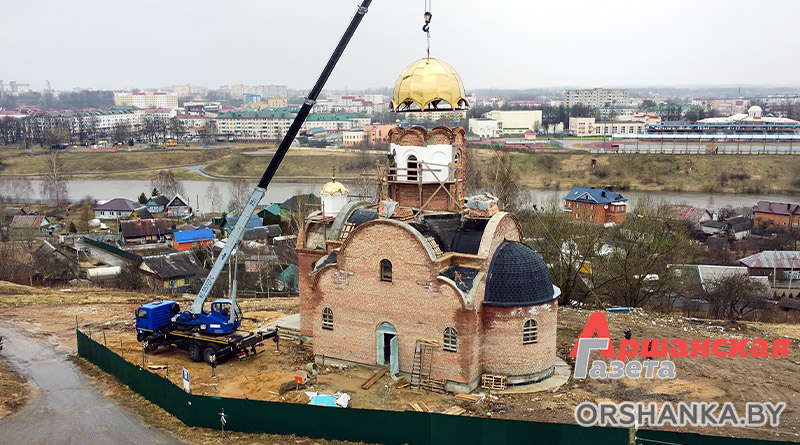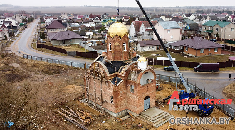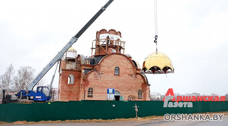 Большой купол установили сегодня на храм в честь святителя Николая Чудотворца по ул. Язепа Дроздовича в Орше.