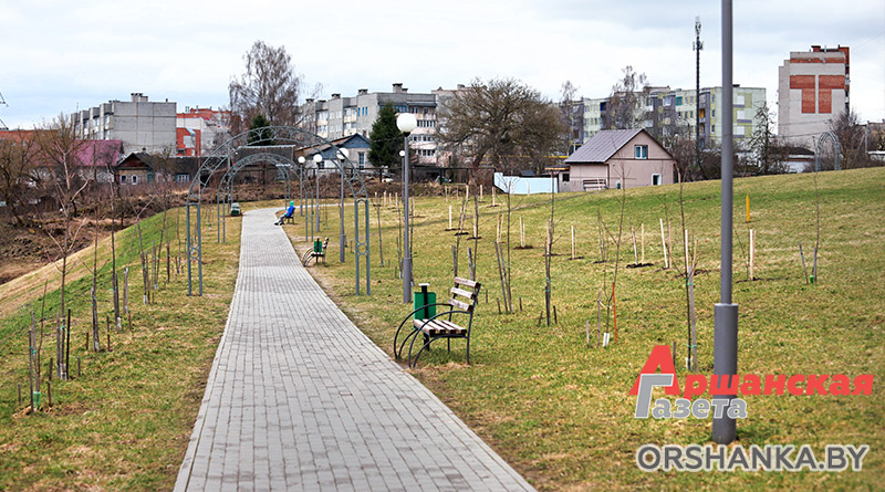 Распределением саженцев по парку занимались работники участка озеленения Оршанской спецавтобазы. Так, на основной территории парка сегодня появились новые аллеи – сформированы третья и четвертая полосы насаждений. Работники предприятия также установили пять лавочек с урнами и сделали участок пешеходной дорожки к остановке.