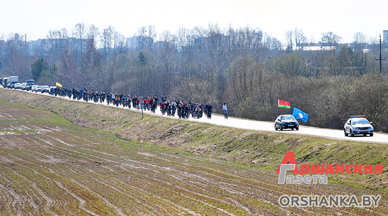 Организованной колонной в сопровождении экипажей ГАИ велосипедисты проследовали в направлении д. Пищалово Оршанского района.