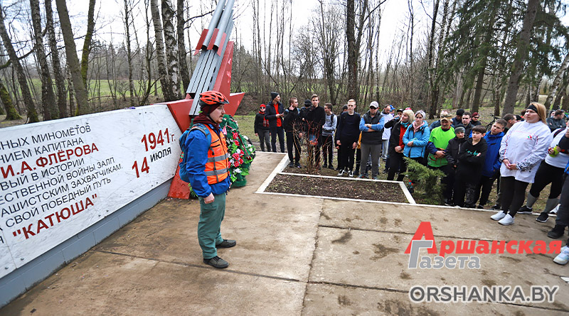 Финальной точкой маршрута стал памятный знак на окраине д. Пищалово. В этой местности 14 июля 1941 года боевая машина реактивной артиллерии «катюша» произвела свой первый разрушительный залп. Работники музейного комплекса и отдела спорта и туризма возложили венки к мемориалу.