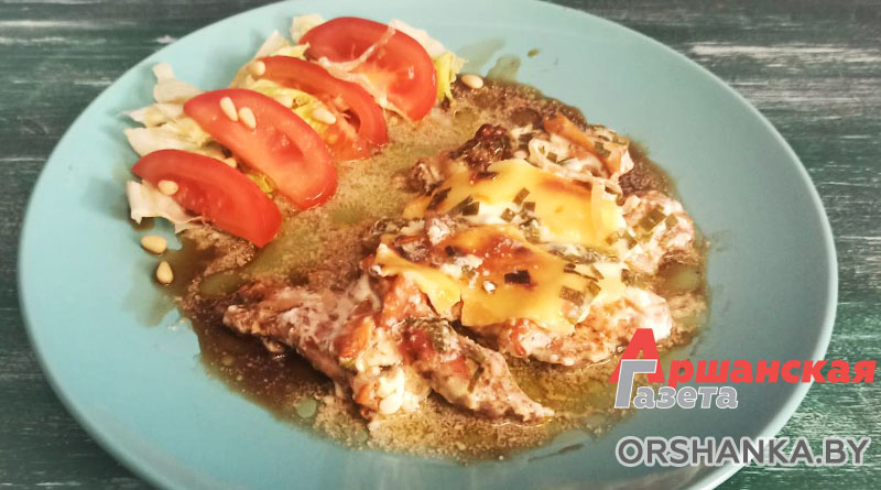 Запеченные куриные бедрышки с лисичками в сметанном соусе