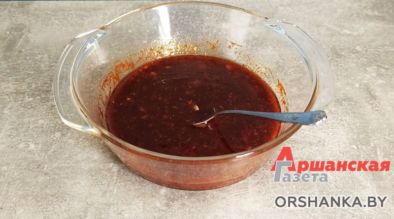 Для соуса: 70 г растительного масла, 70 г соевого соуса, 1 ст. л. сладкой паприки, 1 ст. л. уксуса, 1 ч. л. соли, 1 ч. л. сахара, 30 г вяленых помидоров или 2 ст. л томатной пасты, 6 зубчиков чеснока.
