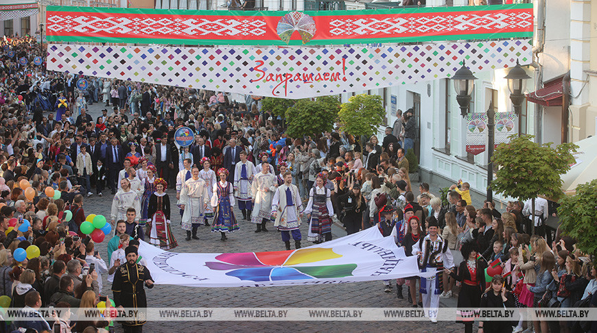 Владимир Перцов добавил: в этом году виден огромный интерес людей к фестивалю. «Большое количество журналистов освещает события праздника. Они едут сюда, чтобы в первую очередь своими глазами все увидеть и рассказать читателям, зрителям, слушателям и подписчикам о том, как на гродненской земле и в стране в целом могут жить люди разных национальностей и вероисповеданий. Нашими оппонентами эта тема не раз поднималась, причем в спекулятивном плане. На Западе заявляют, что у них мультикультурализм, полиэтнос, но на самом деле мы видим дискриминацию по национальному, религиозному, расовому признаку и во что это выливается. По сути, это и движение БЛМ, и азиатские движения, и притеснение белорусов во время переписи населения в Польше. И таких фактов много, хотя политики там кричат об обратном. У нас же люди в мире живут и работают, считают себя белорусами и частью белорусской нации, независимо от того, родились здесь или приехали из другой страны», — заключил министр информации.