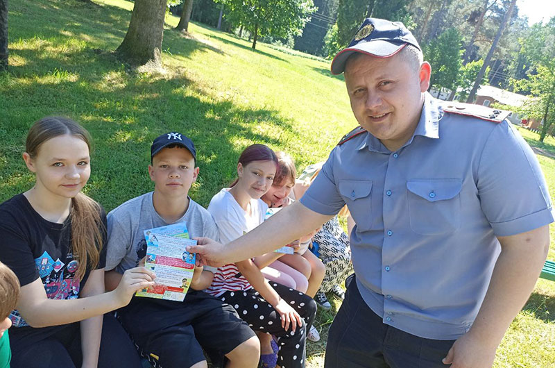 Начальник инспекции по делам несовершеннолетних подполковник милиции Дмитрий Вишневский рассказывал детям о правилах поведения в общественных местах, на водах и в лесах. Ребята узнали об ответственности за правонарушения. Начальник ОНиПТЛ капитан милиции Владимир Казарин рассказал детям о недопустимости преступлений, связанных с употреблением и хранением наркотических веществ. Особенно заинтересовал ребят рассказ сотрудника ГПК майора милиции Александра Арешникова о правилах общения в социальных сетях и мессенджерах. А сотрудник ГАИ майор милиции Виктор Тихонов провел занятия по правилам дорожной безопасности, закрепил у детей навыки поведения на дороге. Он напомнил ребятам, как правильно переходить проезжую часть, использовать велотранспорт и средства индивидуальной мобильности.