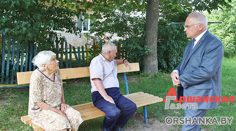 Юрий Деркач общается с председателем сельисполкома Игорем Велитченко