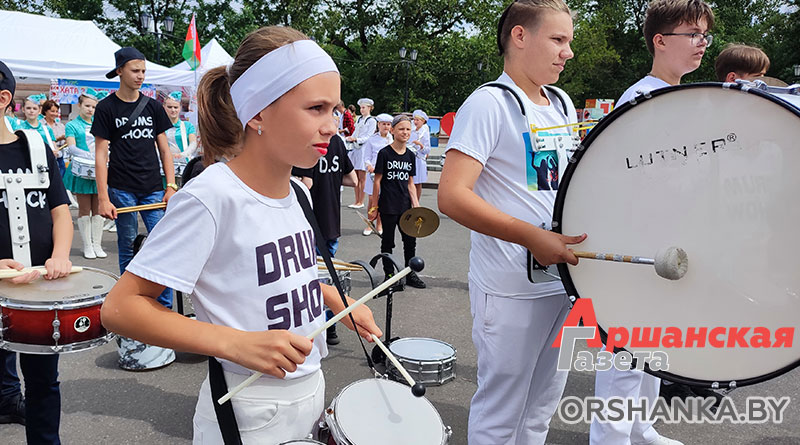 Участие в фестивале барабанщиц и мажореток приняли и оршанцы – образцовый хореографический коллектив «Веселушки», вокально-хореографический коллектив «Альянс» ДК г. Барани, ансамбль барабанщиков «Drums Shock» ДШИ № 3 г. Барани и «Drum Show» г. Орши. Кстати, бараньцы завоевали диплом лауреатов первой степени в номинации «Показ на подиуме «Барабан».