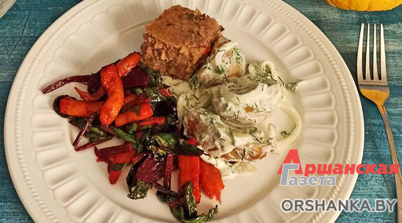 Отварной картофель с соусом и тушеными овощами