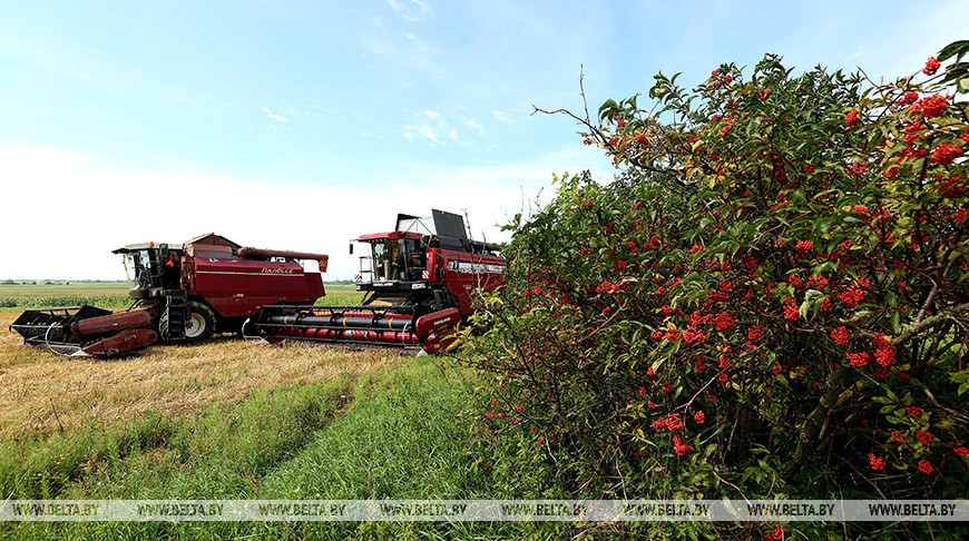 «Уборка зерновых и зернобобовых культур в стране идет полным ходом — убрано уже более 75% площадей без учета кукурузы, гречихи и проса. Наибольшими темпами работы идут в Брестской области — там они почти завершены. Наименьший процент площадей пока убран в Витебской области, но и там пересечен экватор», — рассказали в министерстве.