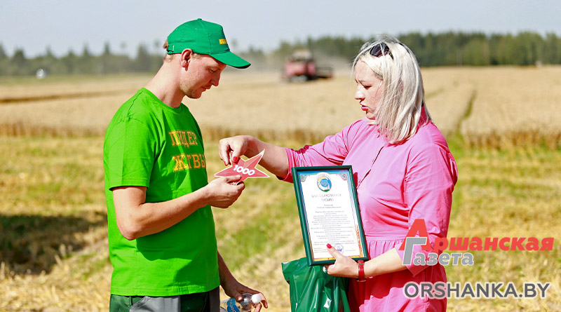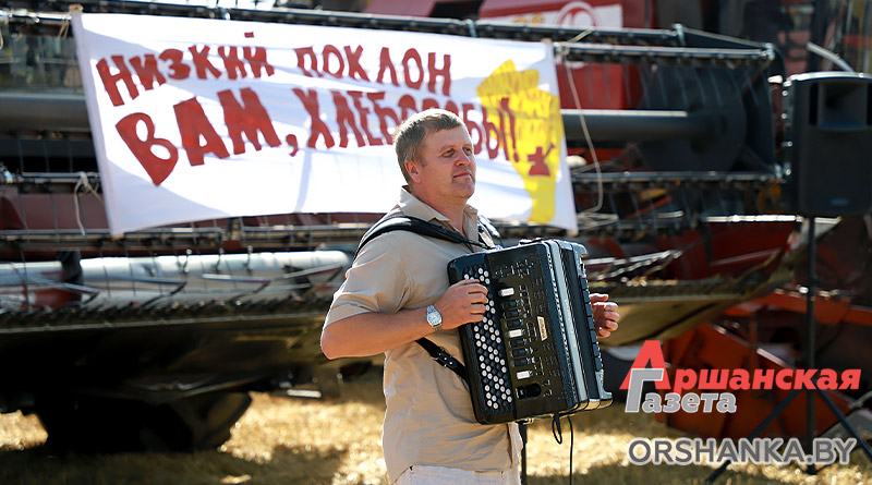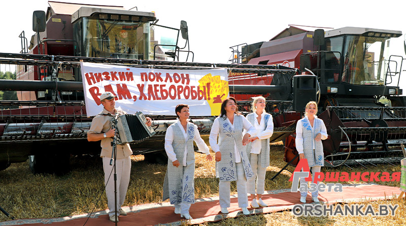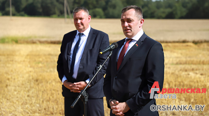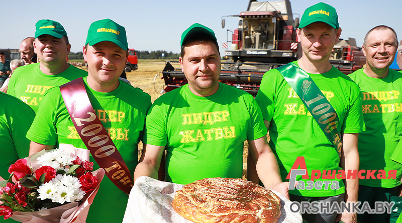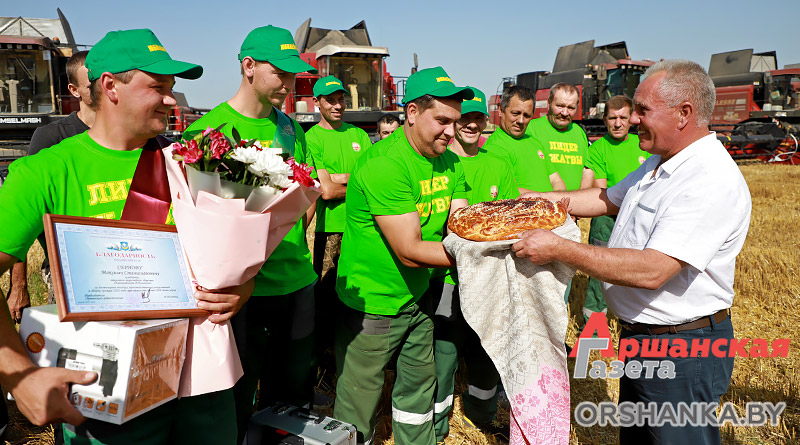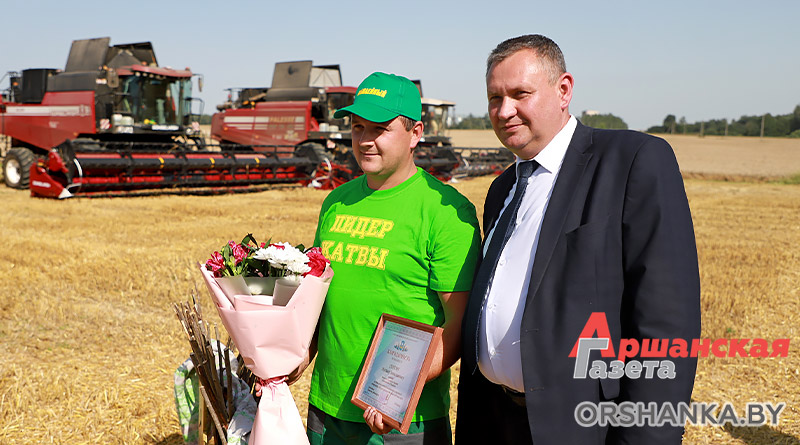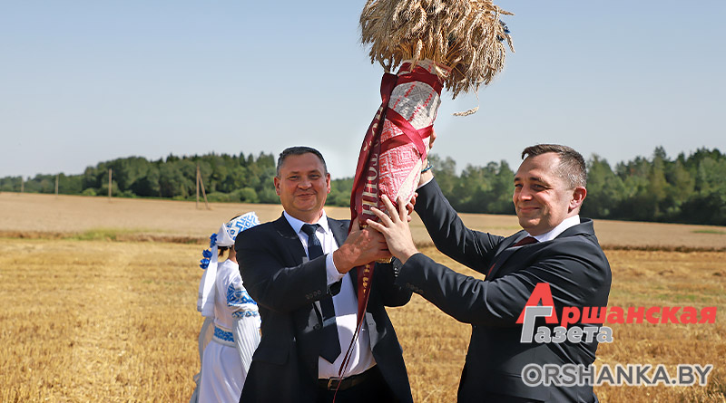 Сегодня на поле ОАО «Агрокомбинат «Юбилейный» в урочище деревни Румино передовиков жатвы чествовали председатель Витебского областного исполнительного комитета Александр Субботин и председатель Оршанского райисполкома Игорь Исаченко.
