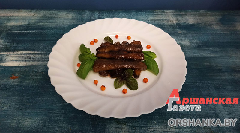 Выкладываем на порционное блюдо, украшаем зеленью.
