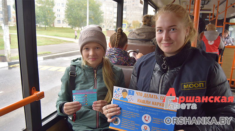 В Орше сотрудники РУВД Оршанского райисполкома совместно с районной организацией Белорусского Общества Красного Креста и членами молодежного отряда охраны общественного порядка БРСМ провели акцию по профилактике правонарушений и преступлений, связанных с незаконным оборотом наркотических средств, как среди взрослых, так и несовершеннолетних.