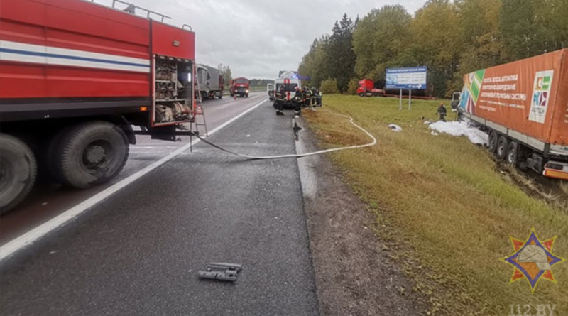 5 октября в 14.03 спасателям поступило сообщение о дорожно-транспортном происшествии на автодороге М-1 «Брест-Минск» вблизи деревни Орловщина Оршанского района. К месту вызова незамедлительно были направлены две автоцистерны пожарной аварийно-спасательной части № 2 Оршанского отдела по чрезвычайным ситуациям.