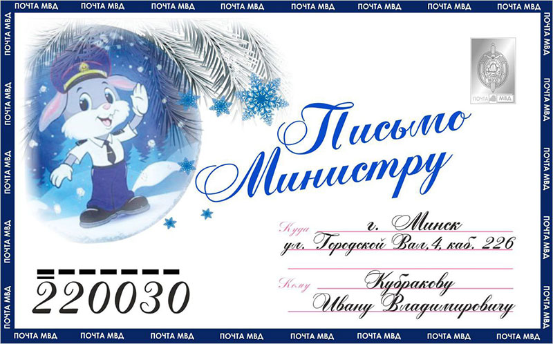 Авторов пяти лучших посланий ждут подарки и посещение новогодней елки во Дворце Республики. А победитель конкурса получит подарок от Министра внутренних дел!