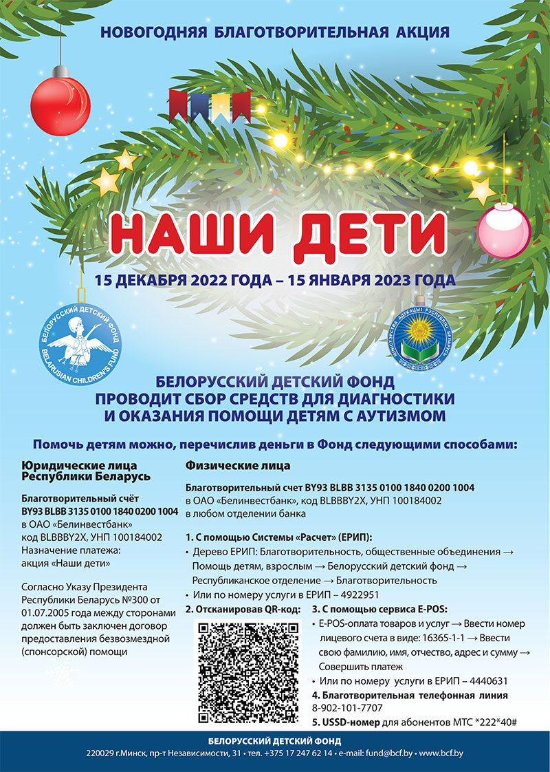Общество Белорусский детский фонд проводит сбор средств для диагностики и оказания помощи детям с аутизмом 16.12.2022 2084 orshanka