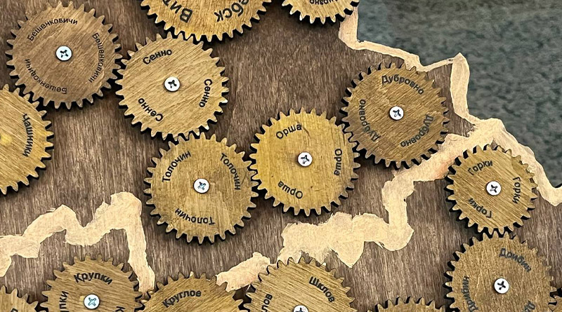 В этом году символом акции стали шестеренки, которые собрали РОО «Патриоты Беларуси» из всех районных центров страны.