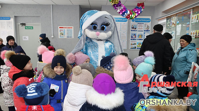 Об этом позаботилась редакция «Аршанскай газеты», которая совместно с Оршанским региональным узлом почтовой связи Витебского филиала РУП «Белпочта» организовала для подписчиков любимой газеты настоящий праздник. Гвоздем программы стала ростовая кукла Зайка. Поплясать вместе с ней под новогодние ритмические мелодии желающих было много.