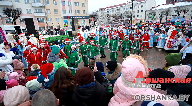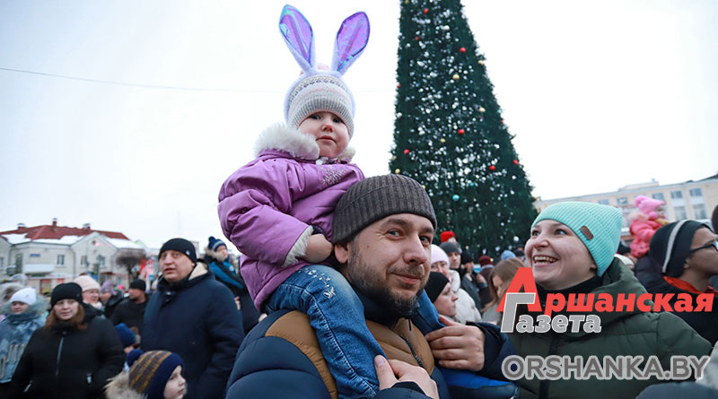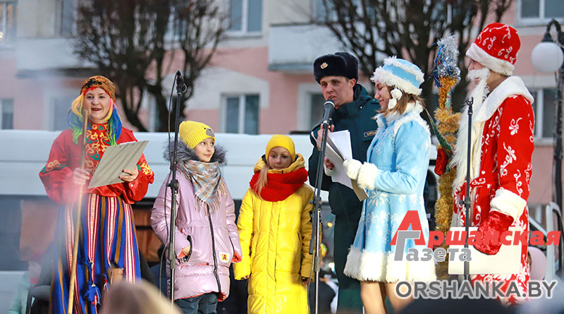 На сцене у новогодней ёлки участников праздника встречали Снеговик и Снежная Королева. Вместе с другими оршанцами, собравшимися на праздник, они дружно зажгли огни на центральной новогодней ёлке.