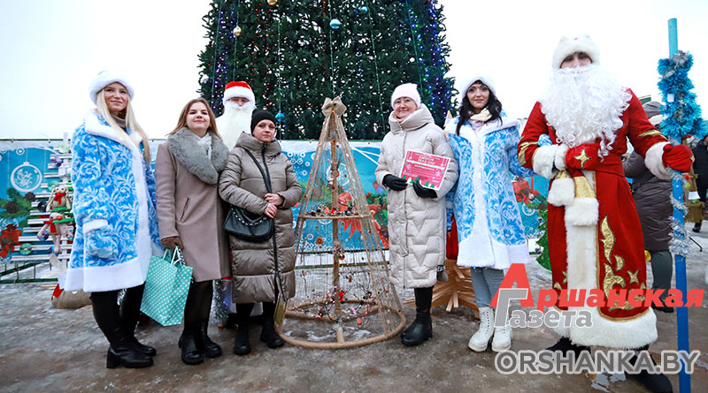 Здесь же подвели итоги конкурса «Ёлки в городе». Дипломами 1 степени отмечены Татьяна Карюк (СШ № 7) в номинации «Ретроёлка», Оршанский государственный медицинский колледж – «Тематическая ёлка», гимназия № 1 имени Г. В. Семёнова – «Экоёлка». Гран-при районного конкурса удостоен Оршанский льнокомбинат. Оригинальную новогоднюю красавицу с использованием льняных материалов создали работники центральной технологической лаборатории льнокомбината – три Юлии – Бакова, Янковская и Бородич. Композицию дополнили сухими ветками, шишками, снегирями из шерстяной пряжи, сушеными апельсинами, тыквенными семечками и ягодами из воздушного пластилина.