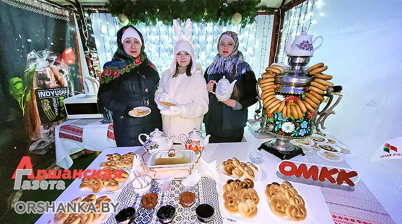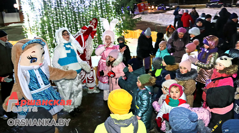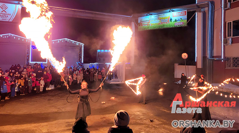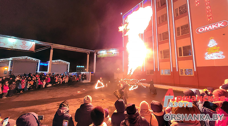 Праздничные мероприятия у новогодней ёлки ОМКК проходят ежедневно с 18.00 до 20.00, а открытие было по-настоящему огненным. Всех гостей, а их было немало, согрели участники театра огня из Минска. Артисты показали яркое выступление с жонглированием огненных предметов и массивными всполыхами огня. Продолжились активности работой аниматоров – детей веселили ростовые куклы Зайки. Присутствовал на площадке и живой символ Нового года – черный кролик Уголёк.